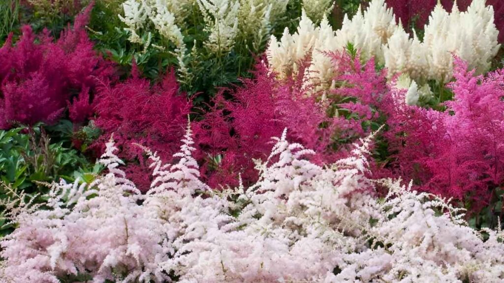 Astilbes are one of the few shade-loving plants that produce vibrant, colorful flowers. Their feathery plumes of red, pink, white, or lavender rise above fern-like foliage, making them an excellent choice for shaded borders or garden beds that need a pop of color.